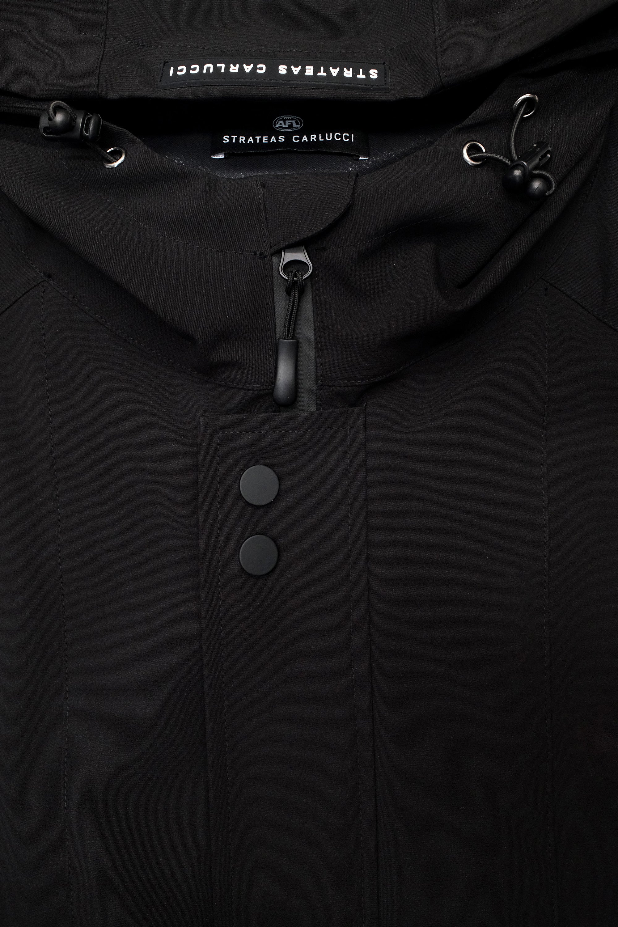 - STRATEAS CARLUCCI branded woven elastic cuff and back flap trim