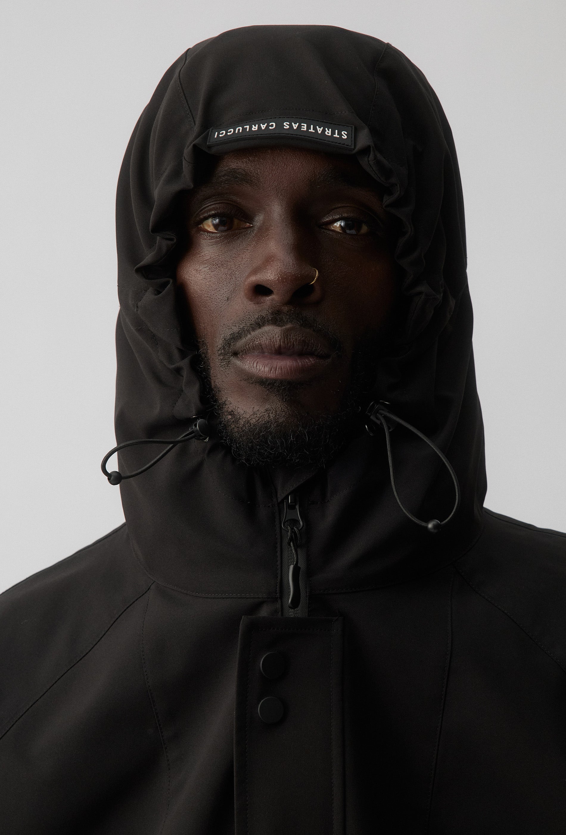 - STRATEAS CARLUCCI branded rubber patch label on hood