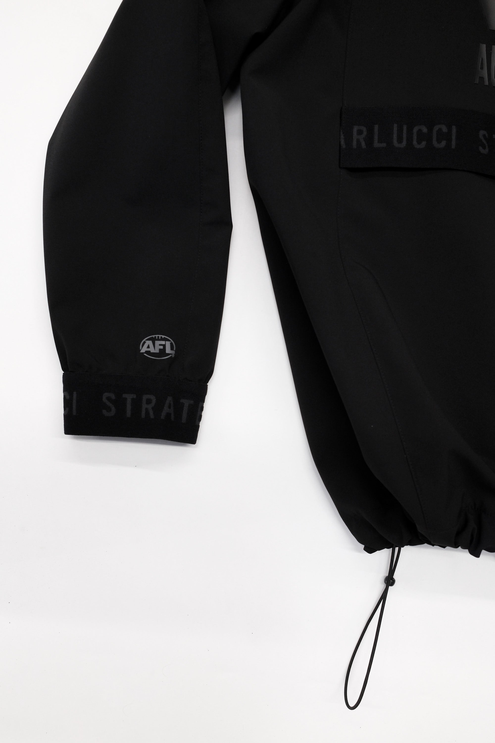 - STRATEAS CARLUCCI branded woven elastic cuff and back flap trim
