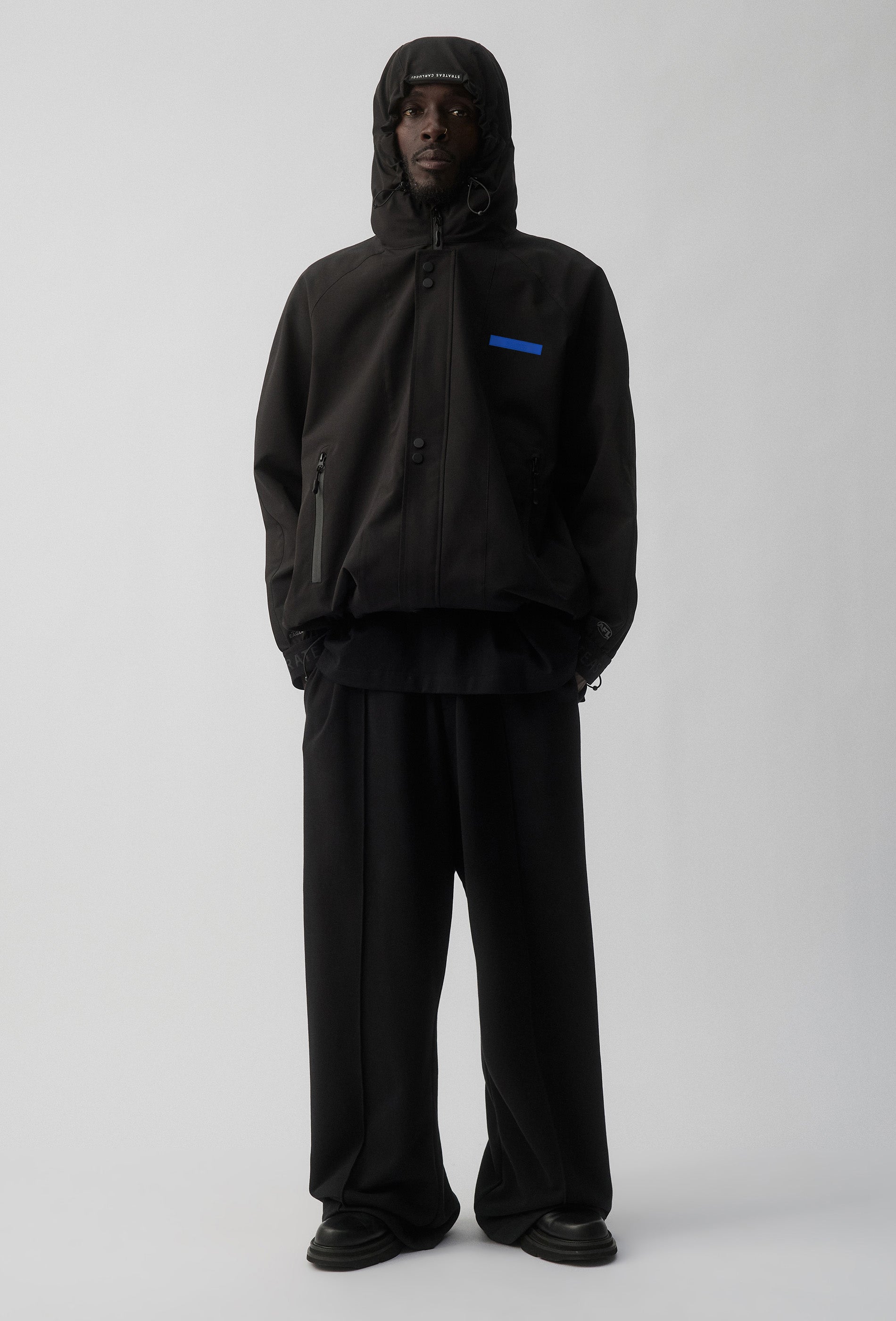 - STRATEAS CARLUCCI branded woven elastic cuff and back flap trim
