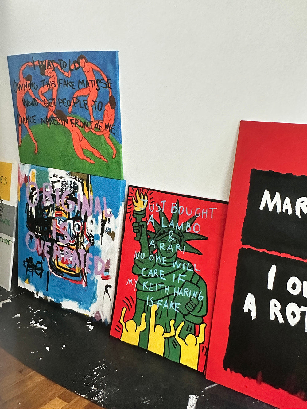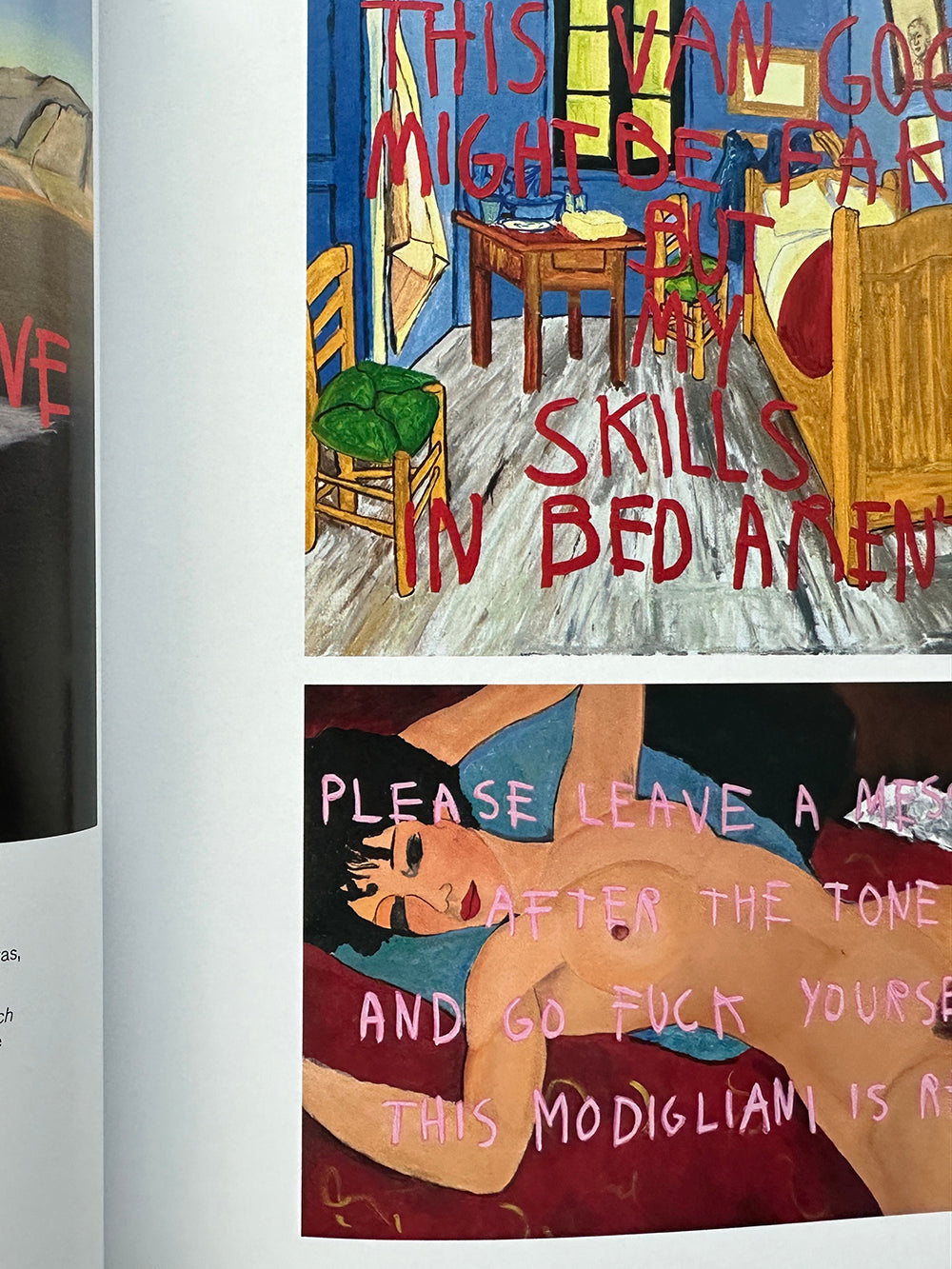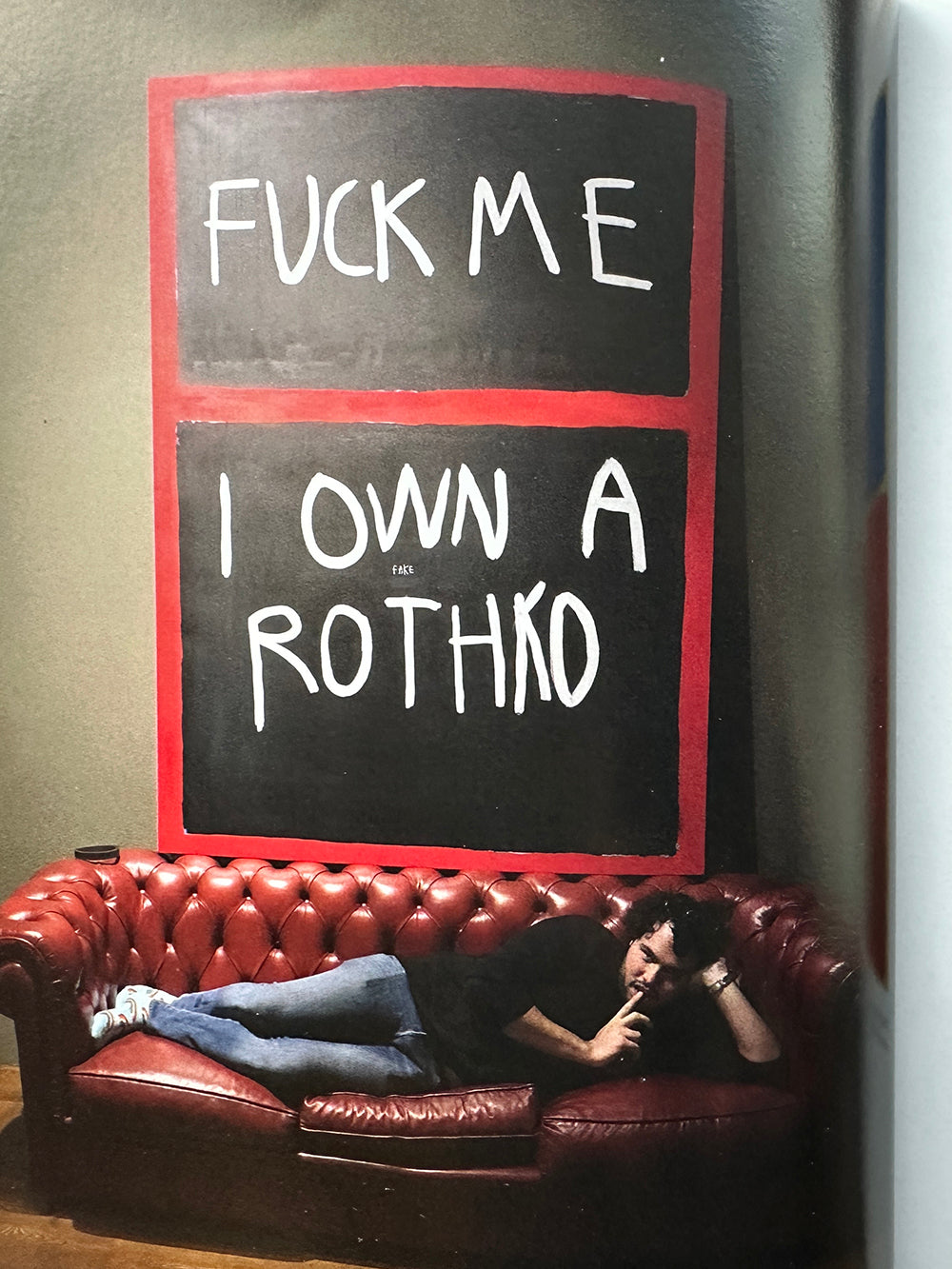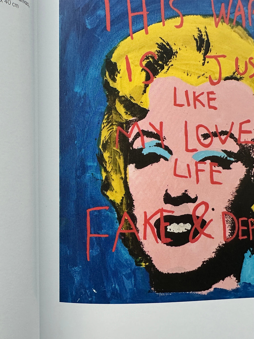 Since he first burst onto the scene in 2017, the prolific, self-taught Cuban painter CB Hoyo (born 1995) has enjoyed an enormous popularity both online and in the art industry: he has more than 500,000 Instagram followers and has held multiple solo shows throughout the world. Hoyo's work comprises "fakes" of works by canonical artists such as Warhol, Banksy, Matisse and Rothko, which he paints over with his own irreverent commentary. In one painting, titled It's a Fake Magritte, Hoyo depicts Magritte's famous The Treachery of Images complete with its well-known pronouncement, "Ceci n'est pas une pipe." Above this, Hoyo has painted in red, "This is not a Magritte." Hoyo's art, relying on blunt humor and Dada-esque irreverence, embraces the new chaotic normality in which we live.