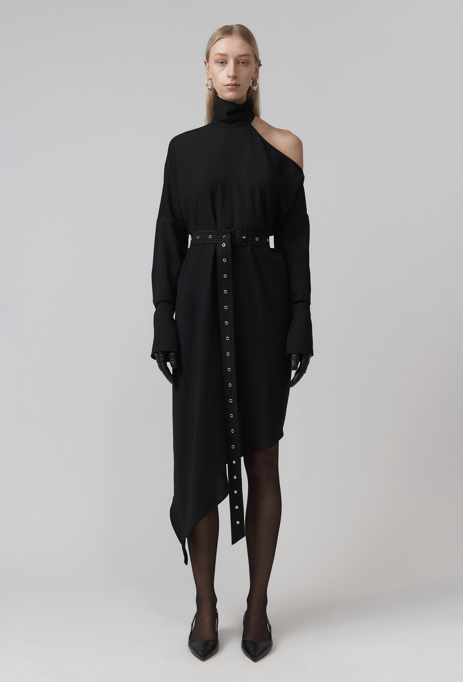 - Echo Dress features cutaway cold shoulder detail