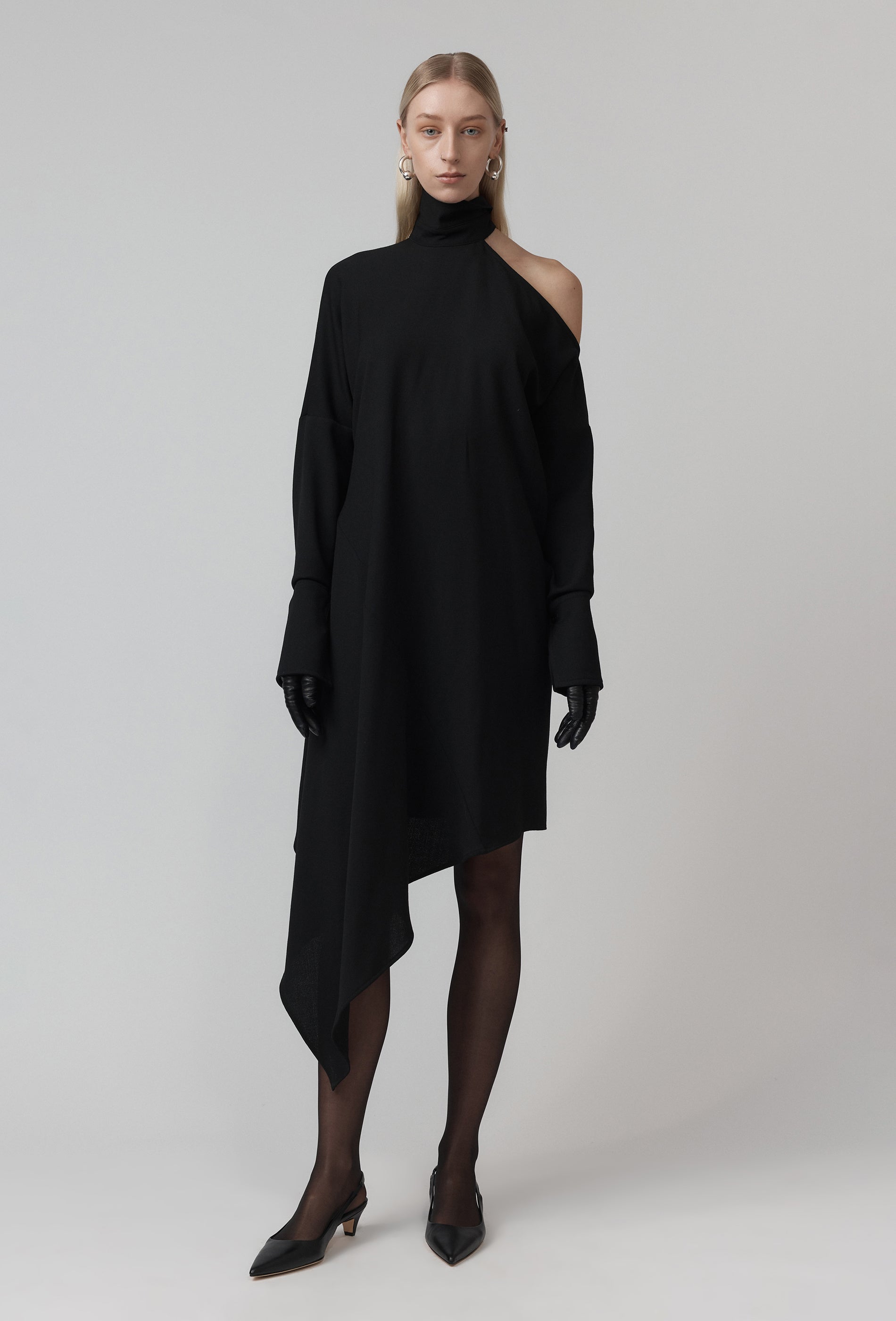 - Funnel neck collared dress