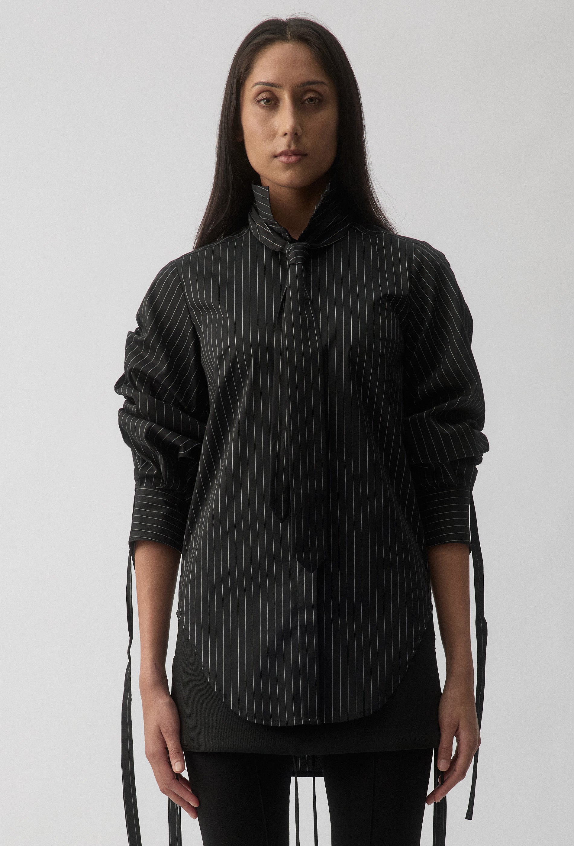 - Exaggerated voluminous sleeve with ruching strap casing detail